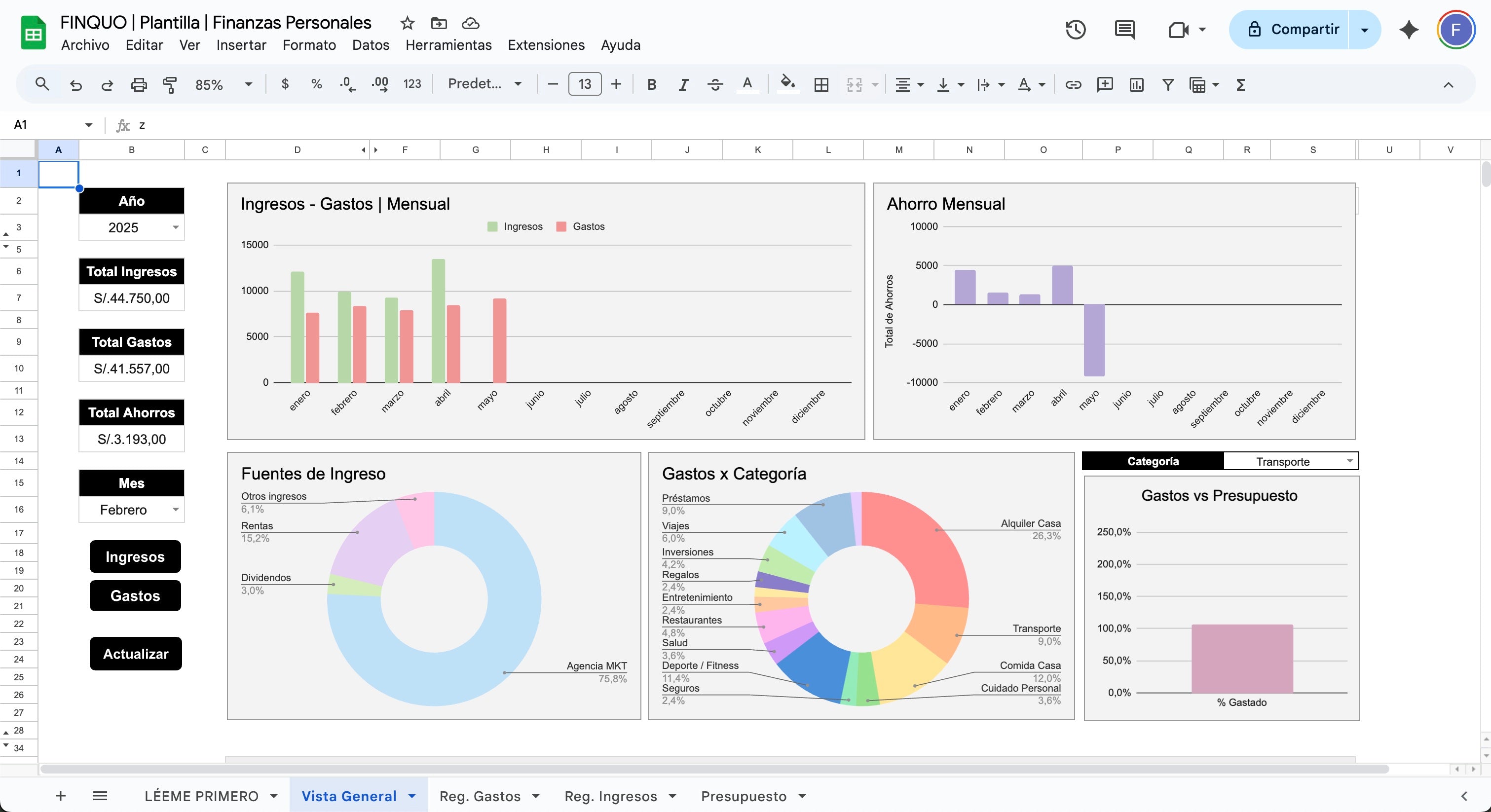 💻 Plantilla en Google Sheets, fácil de usar y 100% online. Compatible con celular, tablet, PC y laptop, permitiéndote gestionar tus finanzas desde cualquier lugar.